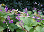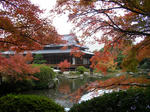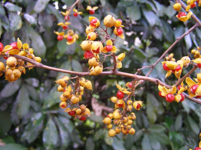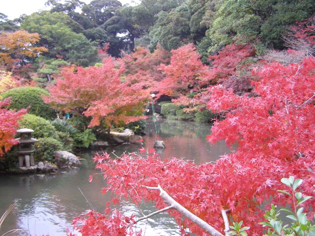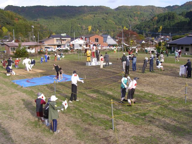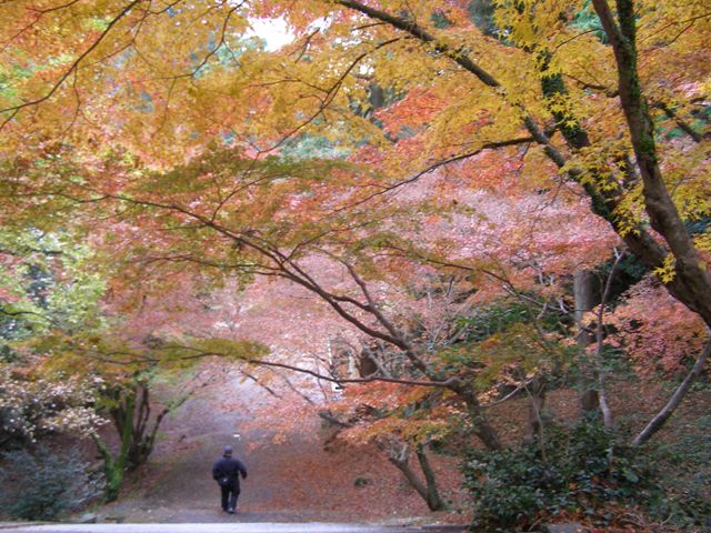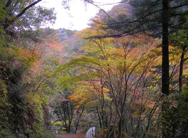 紅葉を見るため久し振りに耶馬渓を目指した。日田を過ぎて山国町に入ると横を流れる川の木の枝に白いビニールの切れ端のようなものが沢山ぶら下っている。昨年の大災害の時にあの高さまで水が来たのだろうと想像するが近くに家があり生きた思いがされなっただろうと思う。青の洞門が見える橋まで行ったが紅くなっている木は少しはあるが紅葉はまだまだ先のようだ。奥耶馬渓にも行く積りであったが紅葉見物は諦めて本来の目的である山に向った。今日は仲間の案内で始めての桧原山に登る。国道212号線の津民入口に「九州百名山桧原山入口」と書いた立派な標識に沿い少し行くと再び「桧原山登山口」の標識が右にある。右折して8km舗装された林道を上ると天台宗正平寺に行き着く。1,300年の歴史がある名刹でモミジが見事に紅葉している駐車場に車を置かせていただく。一番下からの登山道は先の大雨で壊れているそうだ。本堂の左手に登り道がある。スギ林を少し行くと分岐点があり左は登り道、正面は下り道の標識がある。左に道をとり山腹を巻きながら登ると押別岩という巨岩の間をすり抜ける所がある。続いて針の耳という這って窟くぐりをすると左京の橋という所で絶景が見える。本には30分と書いているが我々の亀さん歩きでは40分余りかかって上宮に到着。山頂はさらに100mほど奥にあるが展望は利かない。上宮で昼食。下りは電波反射板の横を真っ直ぐの急坂を下る。修験の山であったといわれる行場の遺構が沢山ある。名前を書いた標識があるが多くて覚え切れない。一旦正平寺まで下りたが千本かつら700mという標識が見えた。歩き足りない気分であったのでそちらに向う。山道だが歩き易い。10分ほどで着いたが思わず「ウォー」という声が出た。一株から二〇本くらいに別れた「かつら」の大樹である。女性9人が手を広げてやっと一回りできる太さだから12mくらいはあるだろう。大分県の天然記念物に指定されているそうだ。一見の価値はある。距離は短く簡単に登れる山だが記憶に残るすばらしい山だった。山国町に戻ってくると田んぼのあちこちに面白い光景がみられる。かかしワールドの真っ最中だ。あまりにも見事なので下車して写真を取り捲る。添付の写真に本当の人間が何人いるか分かるかな。正解は3人です。今日は本当に楽しい一日だった。ただ耶馬渓に紅葉だけを見に行くのは勿体ない。是非桧原山を紹介してあげたい。