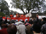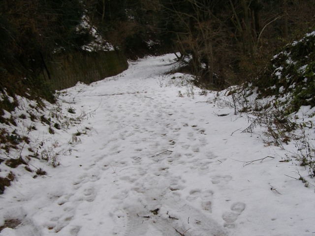 去る20日の山歩きで今年最後の挨拶をしたばかりの相手から、明日行こうと電話があった。天気予報は海岸に近い地方は昼から雨模様となっていたが、断る理由は無い。さらに仲間を集めて4名で若杉山に向った。途中見える三郡山の山並には雪と思われる白い所がある。車は若杉楽園キャンプ場に停める。青空が出て天気は良い。早速大杉の森遊歩道に入っていった。「綾杉」「大和の大杉」を過ぎて林道に出た。出口には新しく木による階段が出来てその横に「大和の大杉」と書いた小さいがしっかりした標識が立てられていた。昨年来た時には無かったもので分かり易く有り難い。ところがここから上に行くにしたがってまさかの積雪で大変。6~7cmはあろうか新雪では無いので表面が凍っていて足を入れるとザックザックと大きな音がする。平な所は気持ちが良いが坂は滑るのを注意しながら慎重に登る。山頂でお参りして奥ノ院に向ったが危険なのではさみ岩は通らずに階段を往復。地面に座れる場所は無く昼食は太祖宮横の売店前で食べたが、ここにあった温度計は1℃を指していた。天気が気になっていたので早々に降り始め2時30分無事下山した。駐車場の上を米の山から飛び立ったと思われる二つのハングライダーが気持ち良さそうに舞っていた。車に乗って間もなく霧雨が振りだし家に着く頃には本降りの雨になっていた。今年一年雨に恵まれ仲間にも恵まれた楽しい山歩きをすることが出来た。総てのことに感謝。